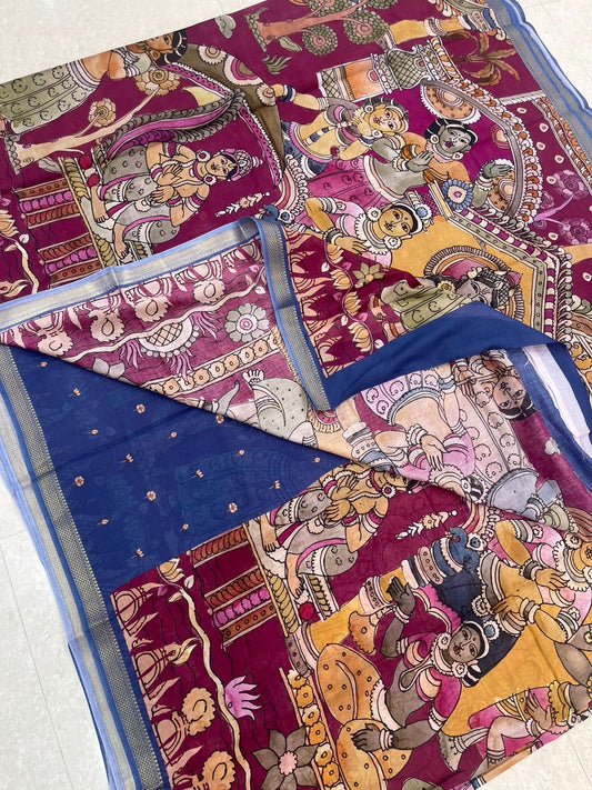 Ponduru feather soft cotton | vishnu story telling saree | blue x pink