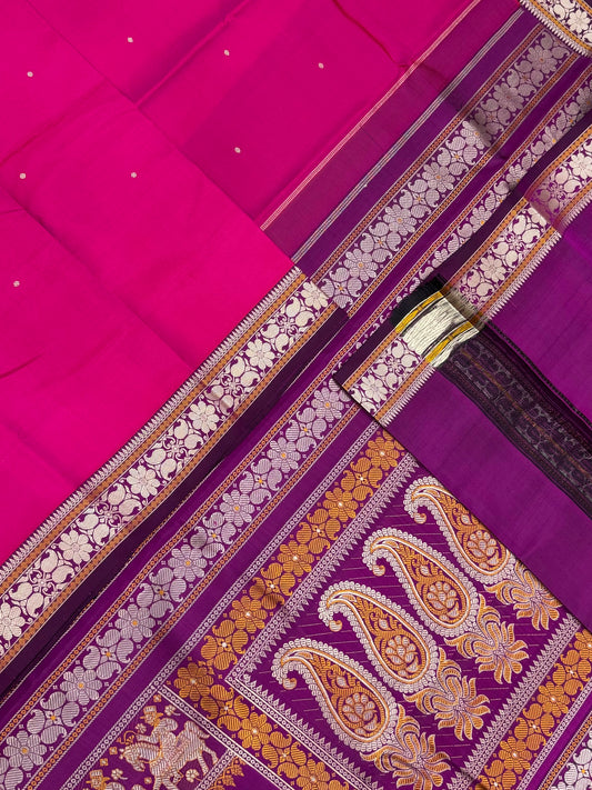Pure Kanjivarams | zero zari | balucharry pallu |hot pink X violet | Handwoven luxury x 4 ply master weave | NKV35