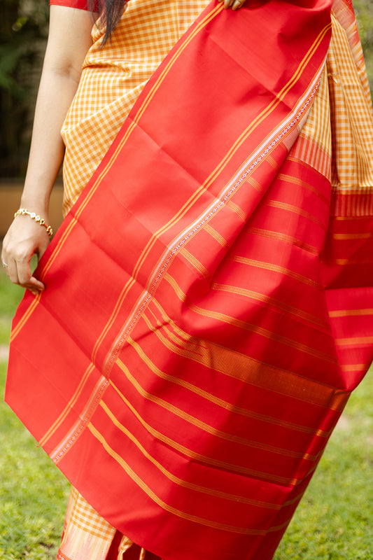 Pure Kanjivarams |Kasa Kasa kattam| Pastel orange x red | NKV122