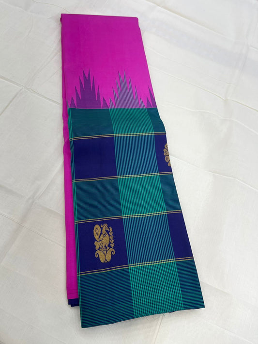 Pure Kanjivarams | peacock blue X pink |one side korvai x long border checks butta | Handwoven luxury x 4 ply | NKV100