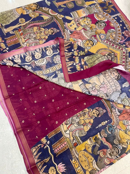 Ponduru feather soft cotton | vishnu story telling saree | blue x pink