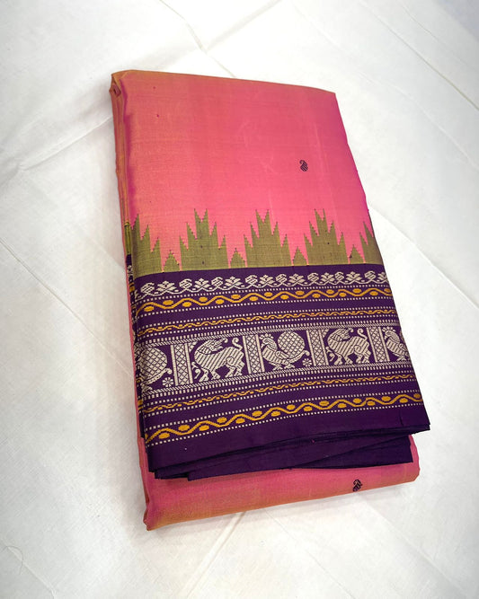 Pure Kanjivarams | pink violet X yhazli mayil | Handwoven luxury x 4 ply | zero Zari