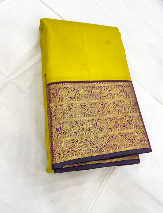 Pure Kanjivarams | yellow X dark pink |hand korvai x diamond butta | Handwoven luxury x 4 ply