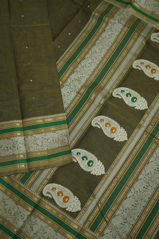 Handloom Rich cotton | 1000 butta vanasingaram 5 motif xzari | mehendi X Blue