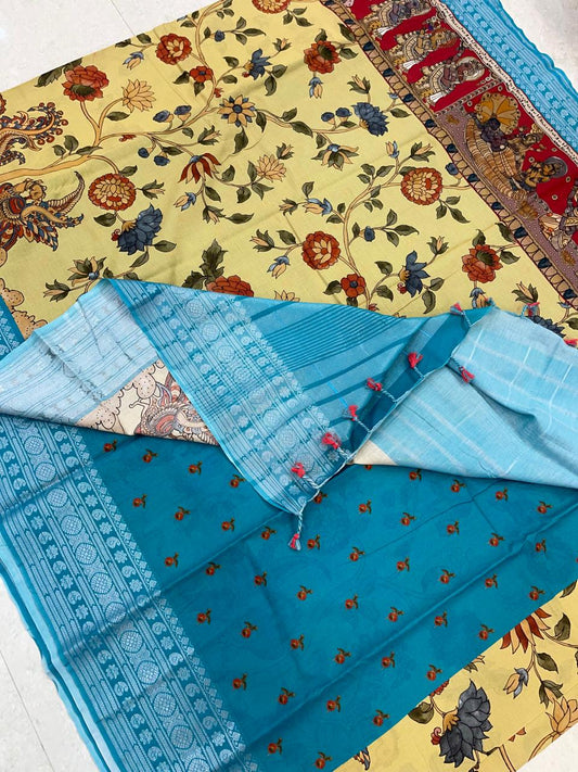 Ponduru soft Cotton silk | storytelling saree X floral| yellow X sky blue |NKV27