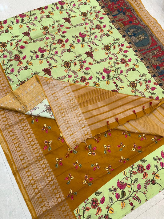 Ponduru soft Cotton silk | storytelling saree X floral| green X mustard |NKV27