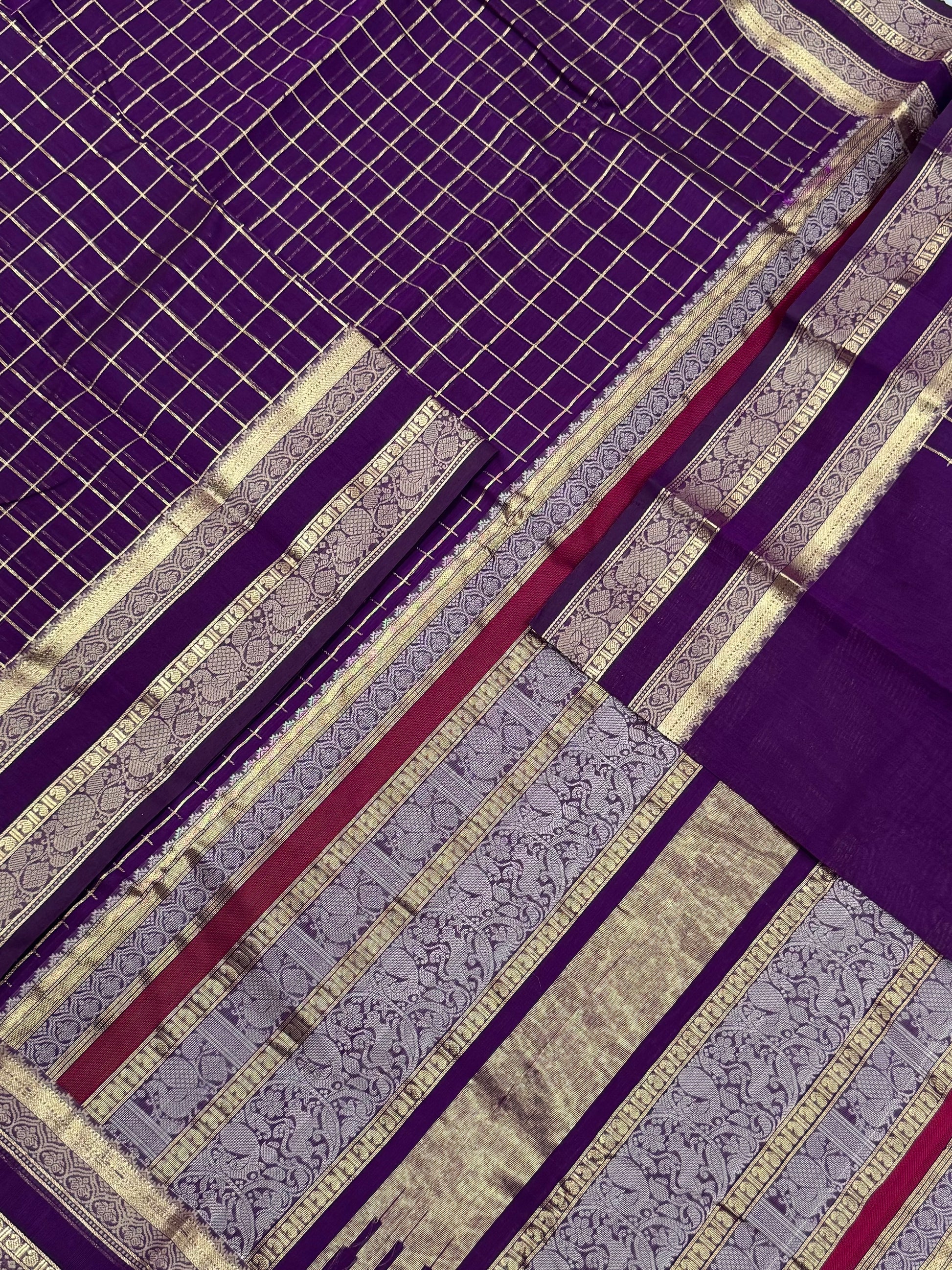 Kanchi handloom rich cotton |kattam X yaanai mayil border | violet x zari