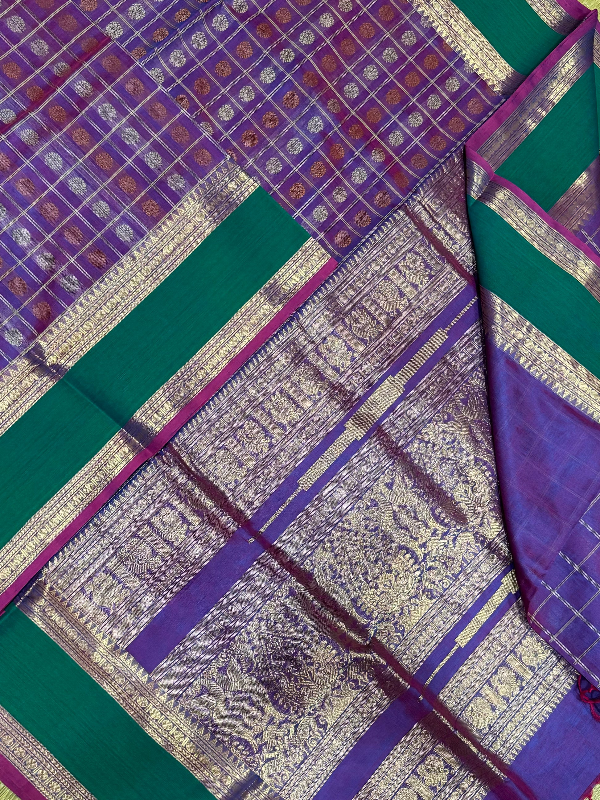 kanchi silk cotton | 1000 BUTTA X rettaipet border | lavender x teal