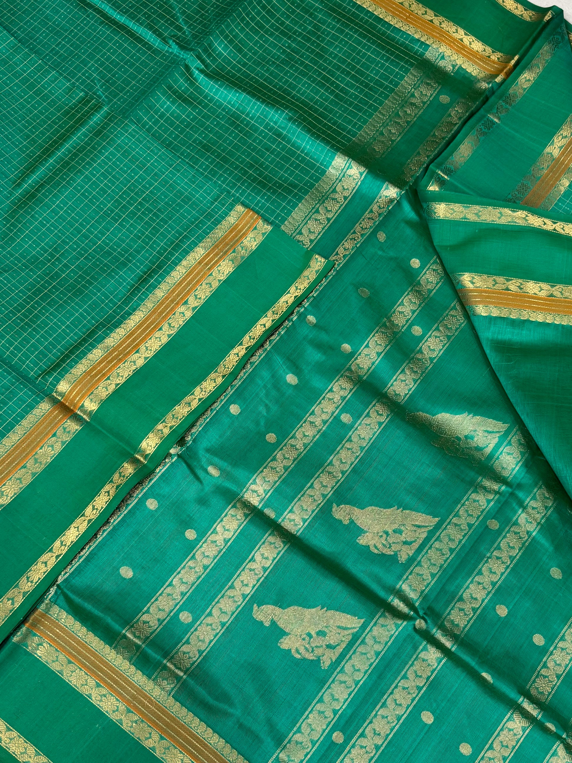 Kanchi Silk Cotton Sarees | 1000 butta X rich zari killi pallu X zari border | aqua marine green