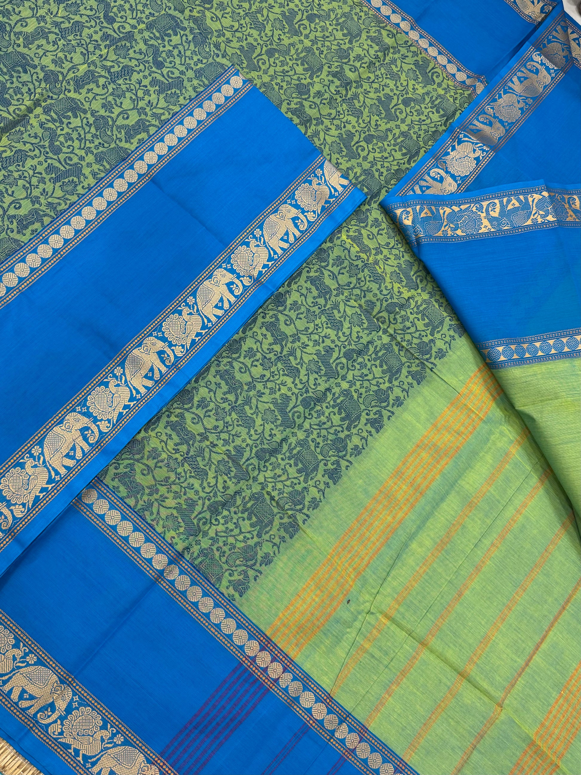 Kanchi soft cotton | teal green x blue | thread border X vanasingaram