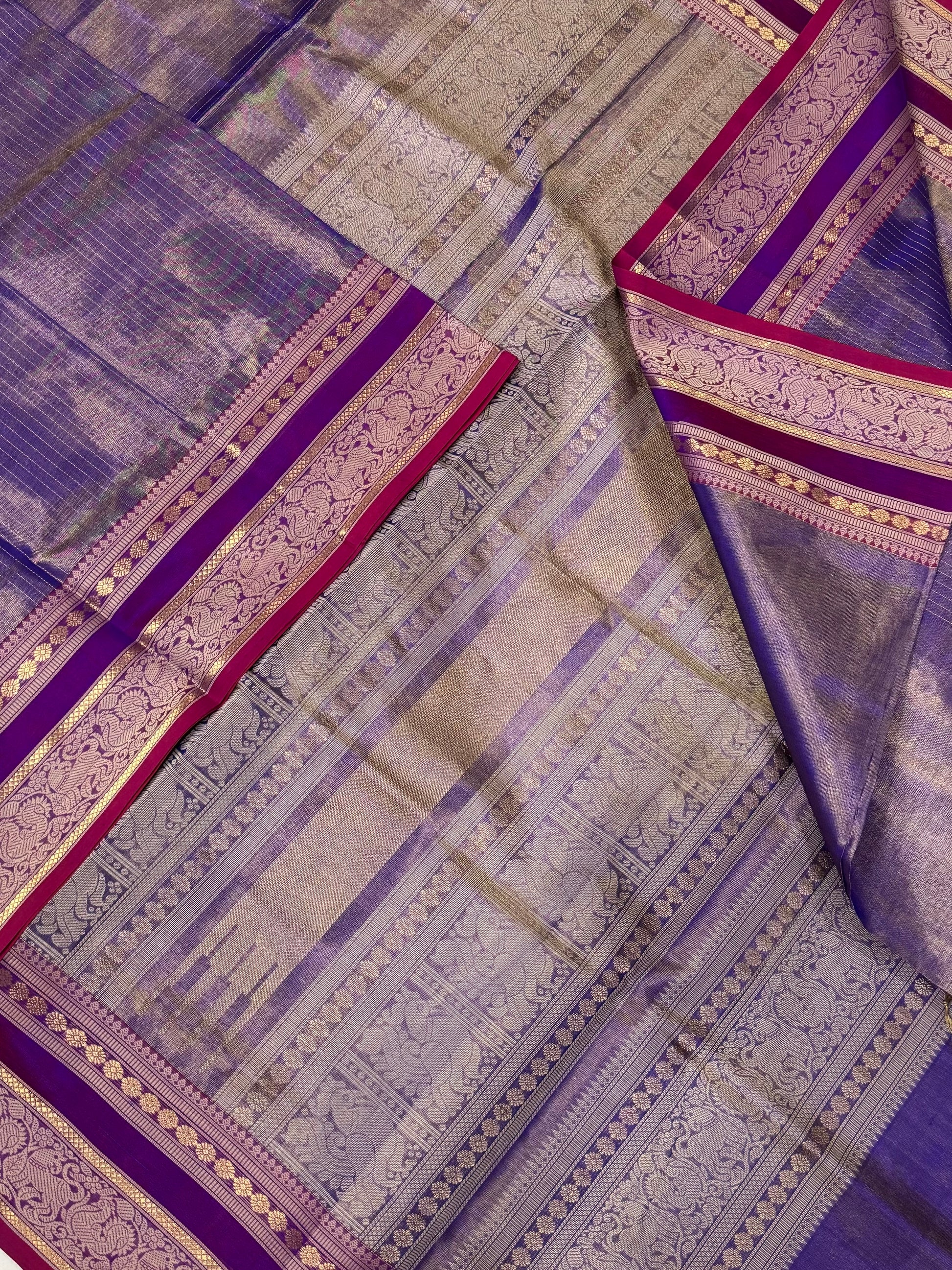 Kanchi Tissue Silk Cotton Sarees | vairaoosi X threads | shiny lavender x pink | NKV100
