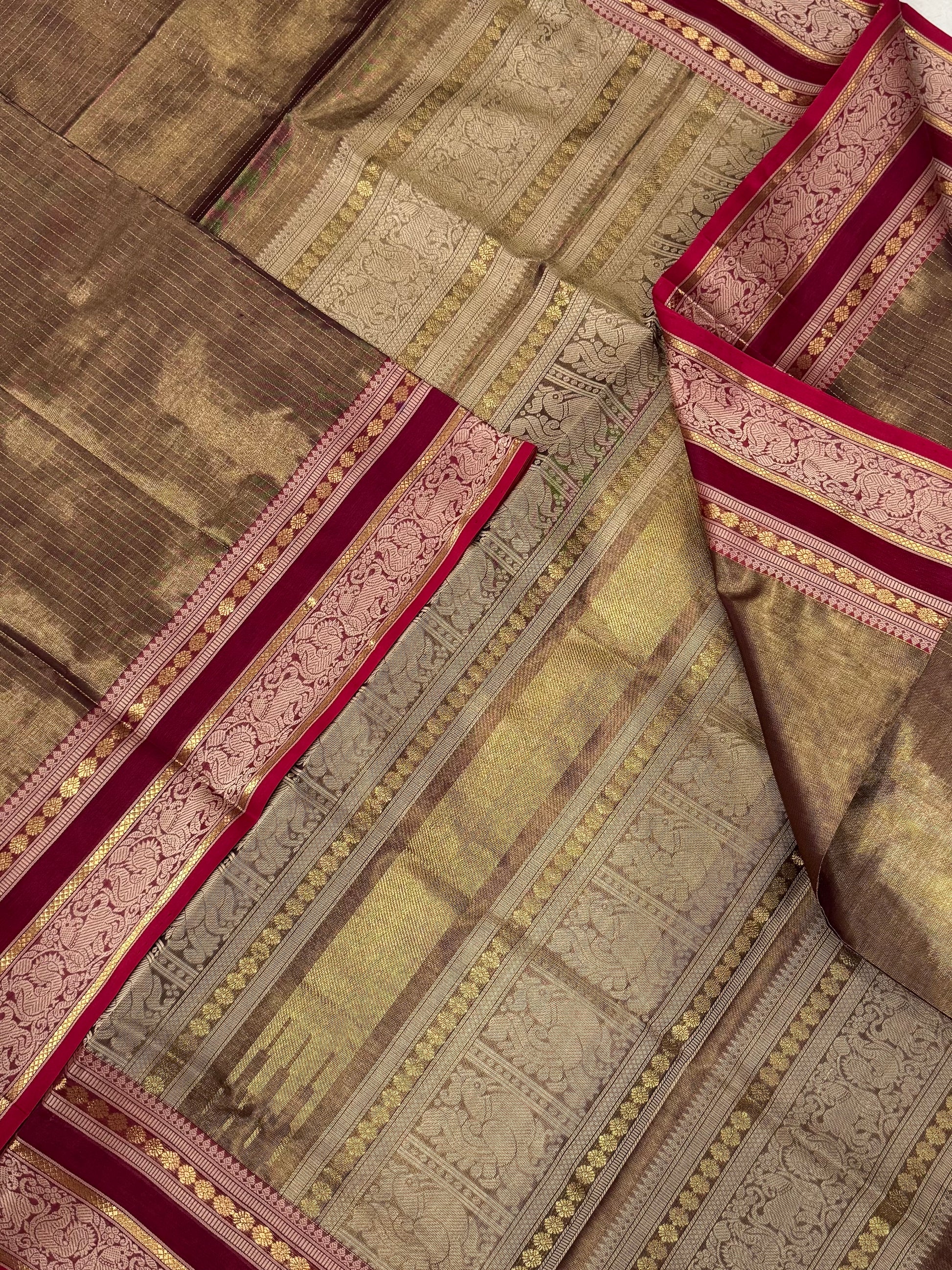 Kanchi Tissue Silk Cotton Sarees | vairaoosi X threads | antique gold x cherry red | NKV100