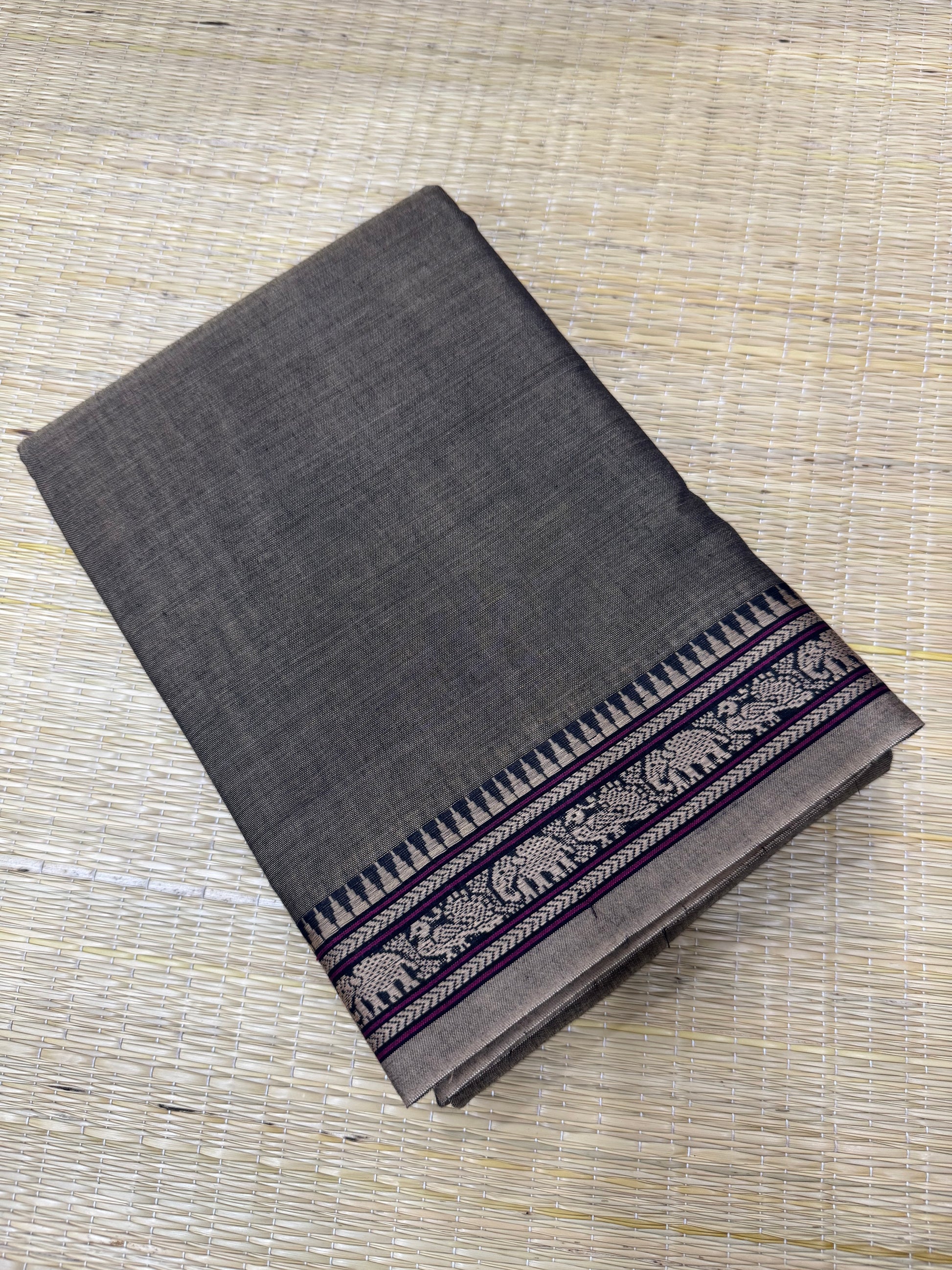 Narayanpet soft cottons | tiny thread border | grey X beige