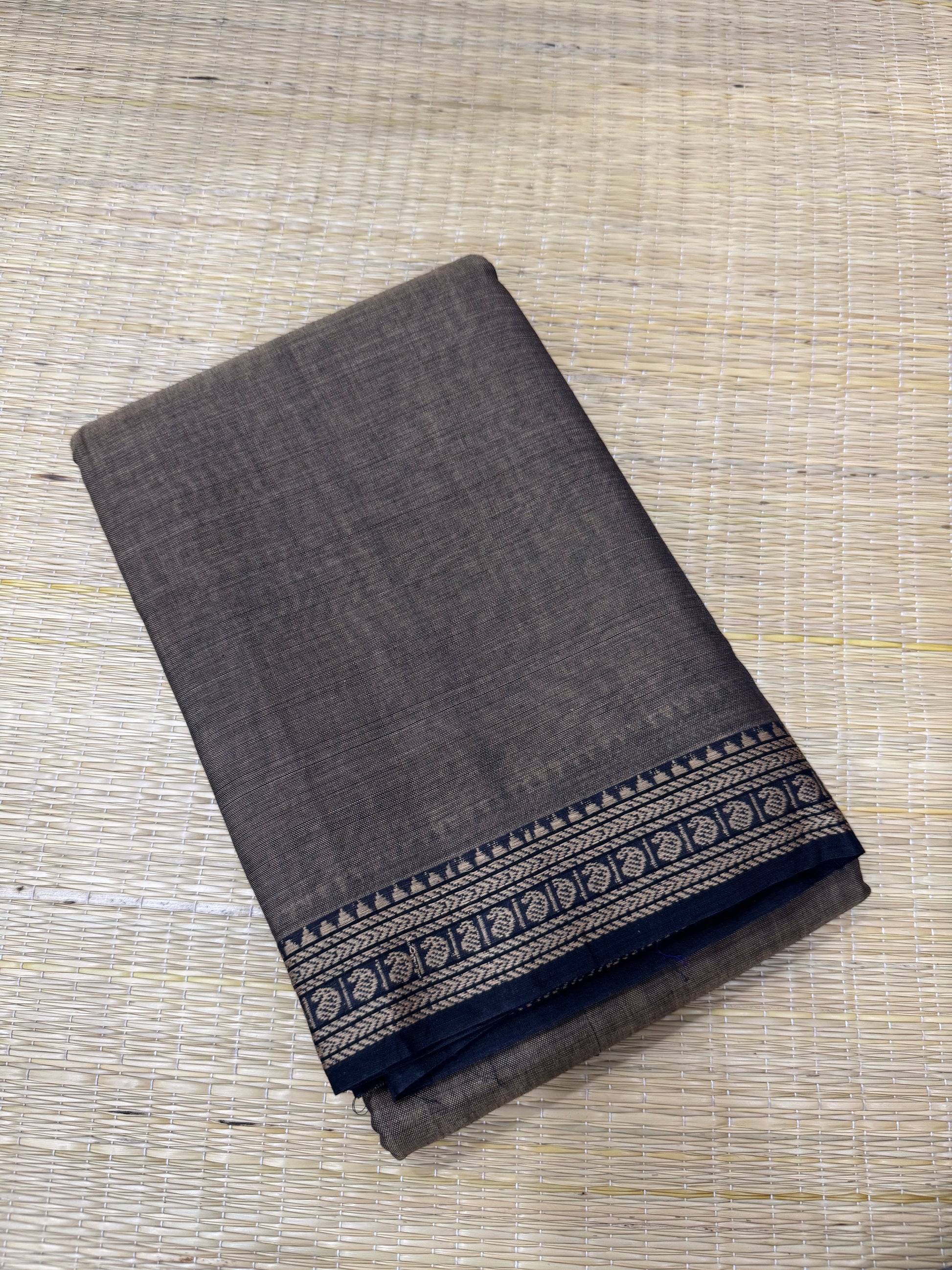 Narayanpet soft cottons | tiny thread border | grey X black
