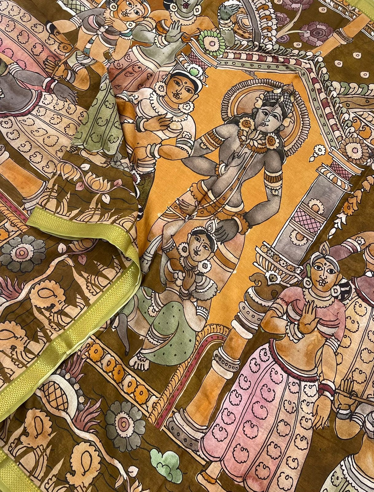 Ponduru feather soft cotton | story telling saree | brown x green |NKV27