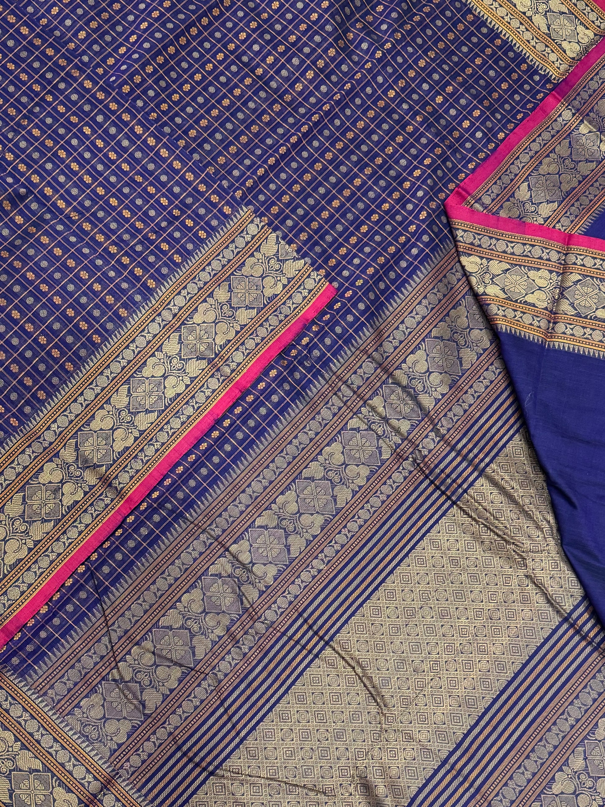 Pure Handloom Kanchi rich Cotton Saree | thread woven X 1000 BUTTA |blue X pink | intricate rich thread woven Pallu & borders