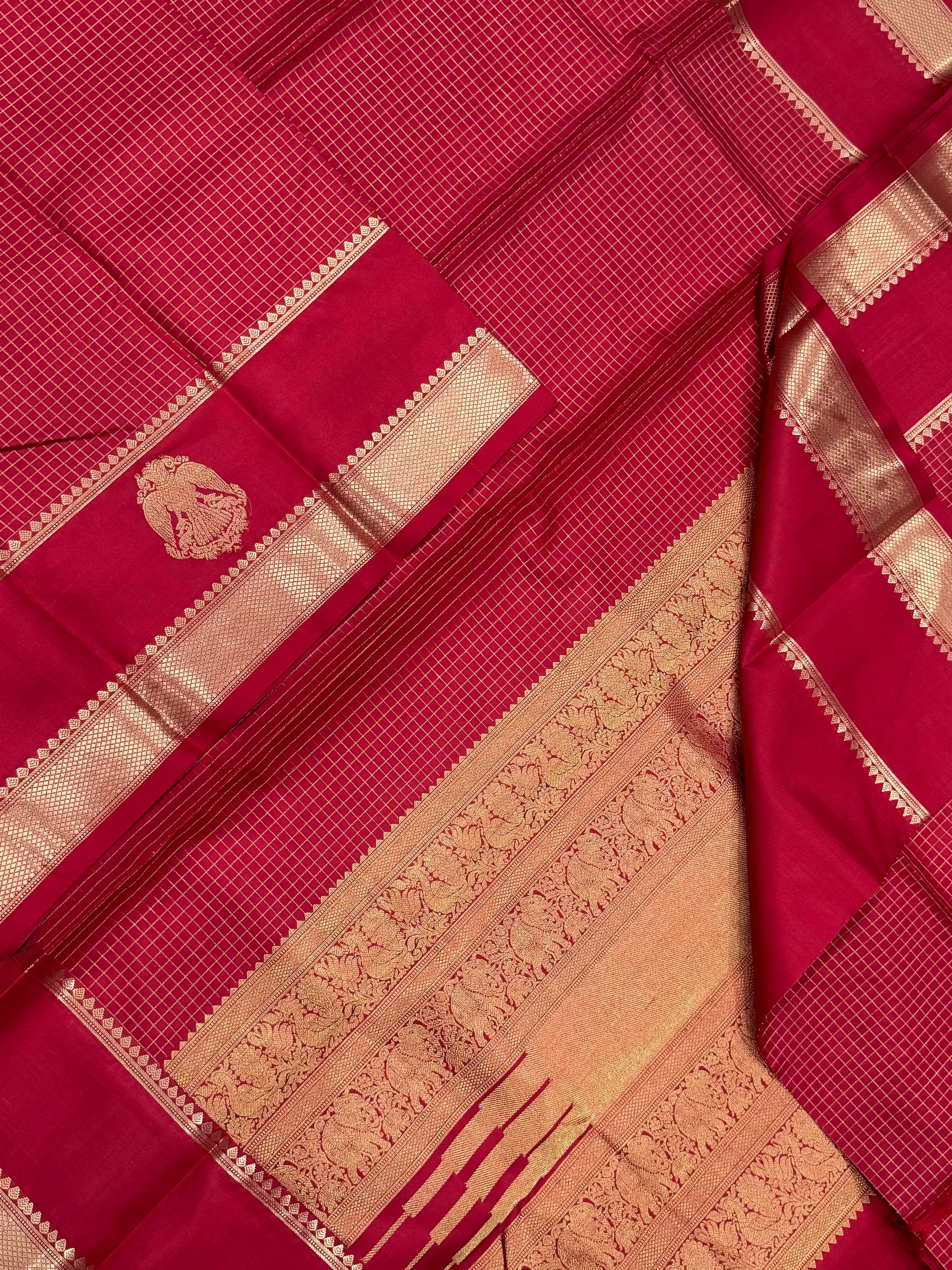 Pure Kanjivarams | podi kattam X eruthalapakshi zari butta | red |Handwoven luxury x 4 ply master weave | NKV45